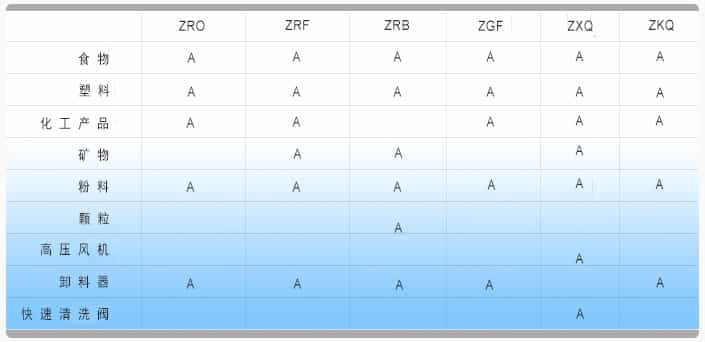 以下表格簡要的就不同的材料選取什么旋轉(zhuǎn)閥做了簡要的說明,僅供參考。